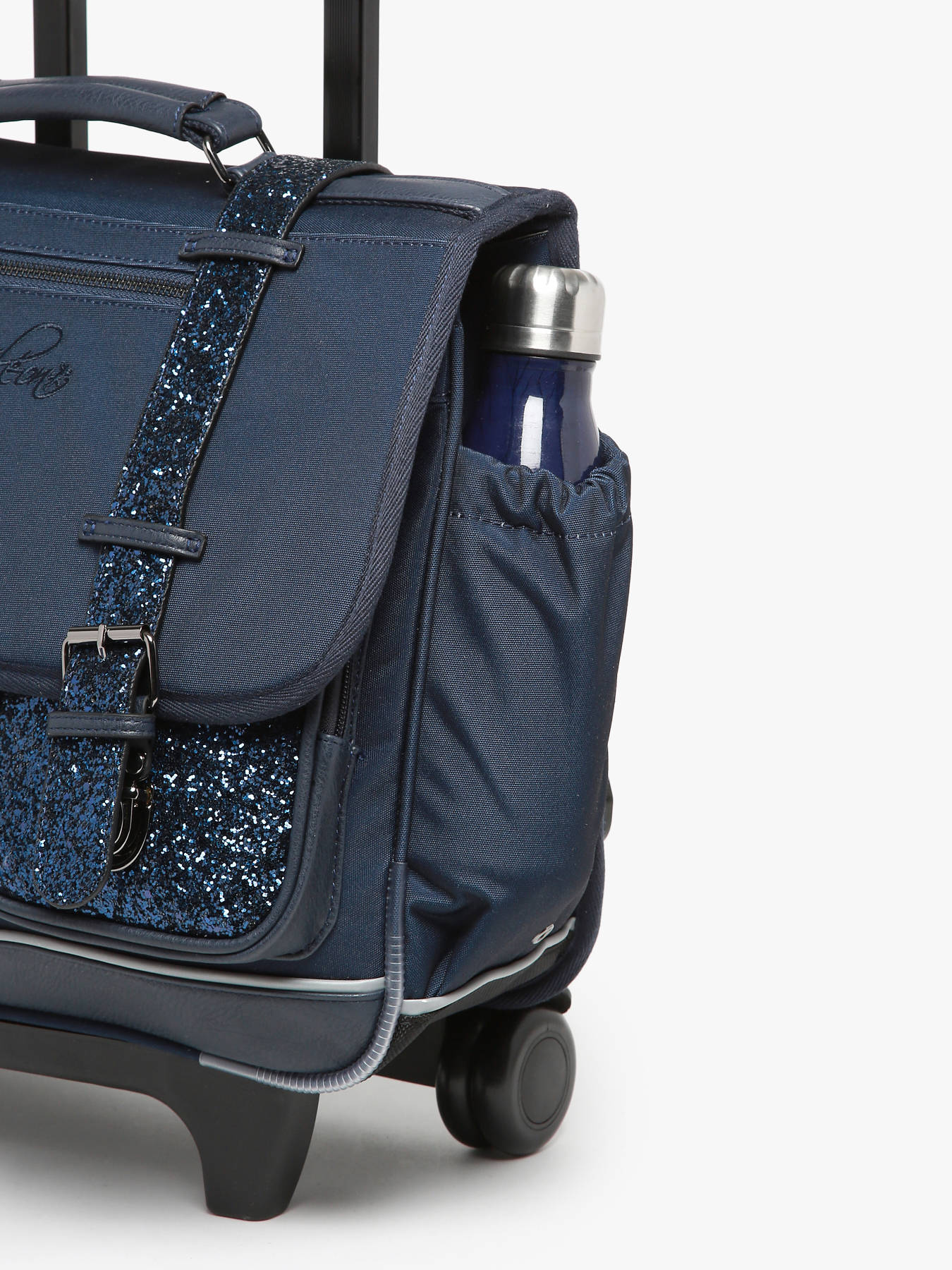 Deze boekentas op wieltjes uit de Vintage Fantasy collectie van het merk Caméléon heeft een breedte van 38 cm. Ideaal voor het 1ste, 2de en 3de leerjaar! Dit model heeft een duidelijke vintage look, dankzij de twee voorvakjes in lederlook en de riempjes met gesp. Deze boekentas beschikt over twee compartimenten, die schriften (24x32 cm) en schoolboeken van A4 formaat kunnen bevatten. Onder de overslagflap bevindt zich ook een uniek opbergvakje, met een gratis liniaal! De twee vakjes vooraan sluiten met rits, en zijn ideaal om een snack of andere kleine spulletjes in te stoppen. Dit model beschikt ook over een naamlabel aan de achterzijde, en kan makkelijk gesloten worden dankzij een dubbel kliksysteem. Voor optimaal comfort zijn de rugzijde en schouderbanden gewatteerd. Dankzij enkele reflectoren kan uw kind zich ook veilig in het verkeer begeven. De schouderriemen dienen te worden opgeborgen in het rugcompartiment bij gebruik van de wieltjes. Een extra flap schermt de wielen af wanneer de tas op de rug wordt gedragen.