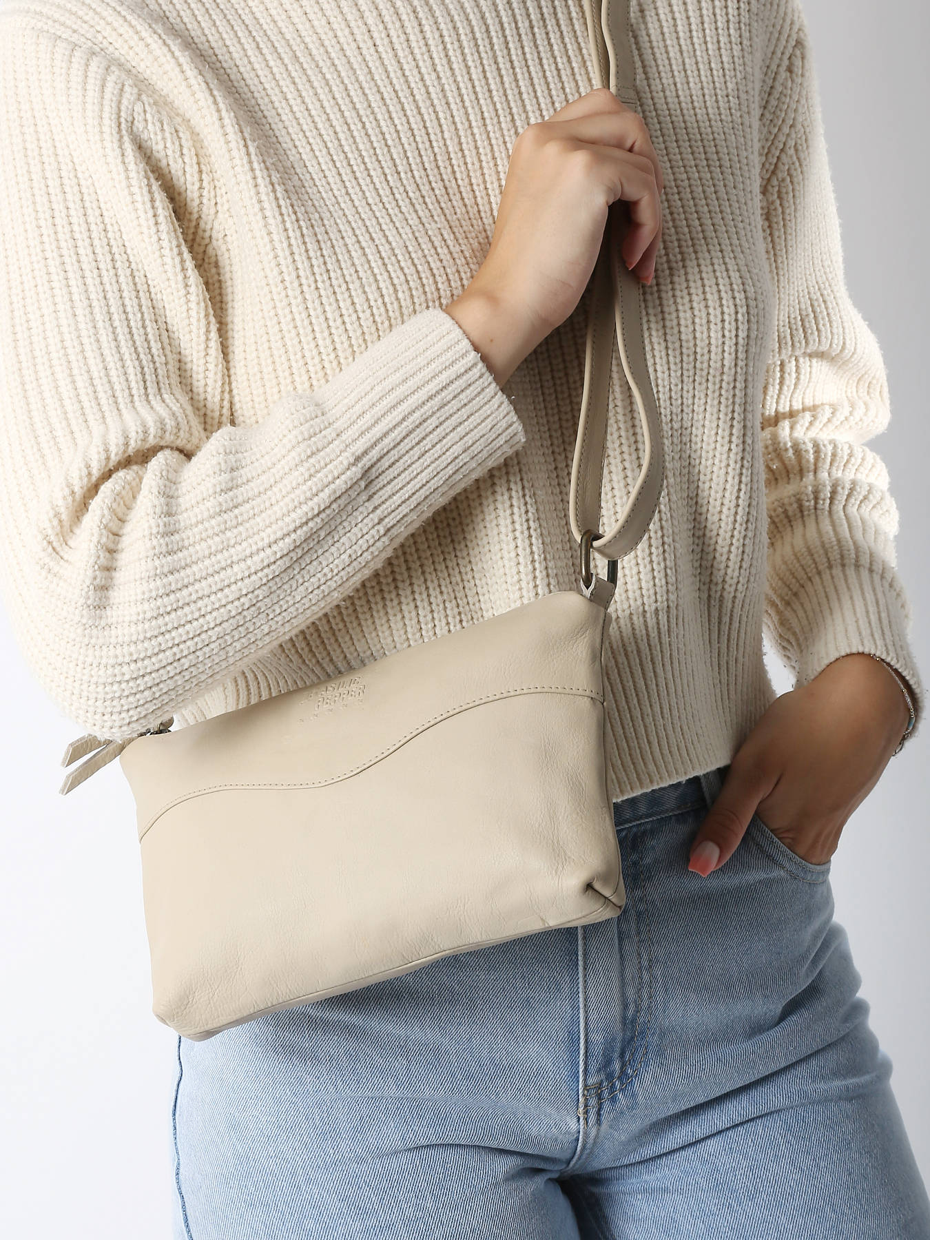• Cross Body Tas Cow Leder Basilic pepper Beige cow BCOW73
