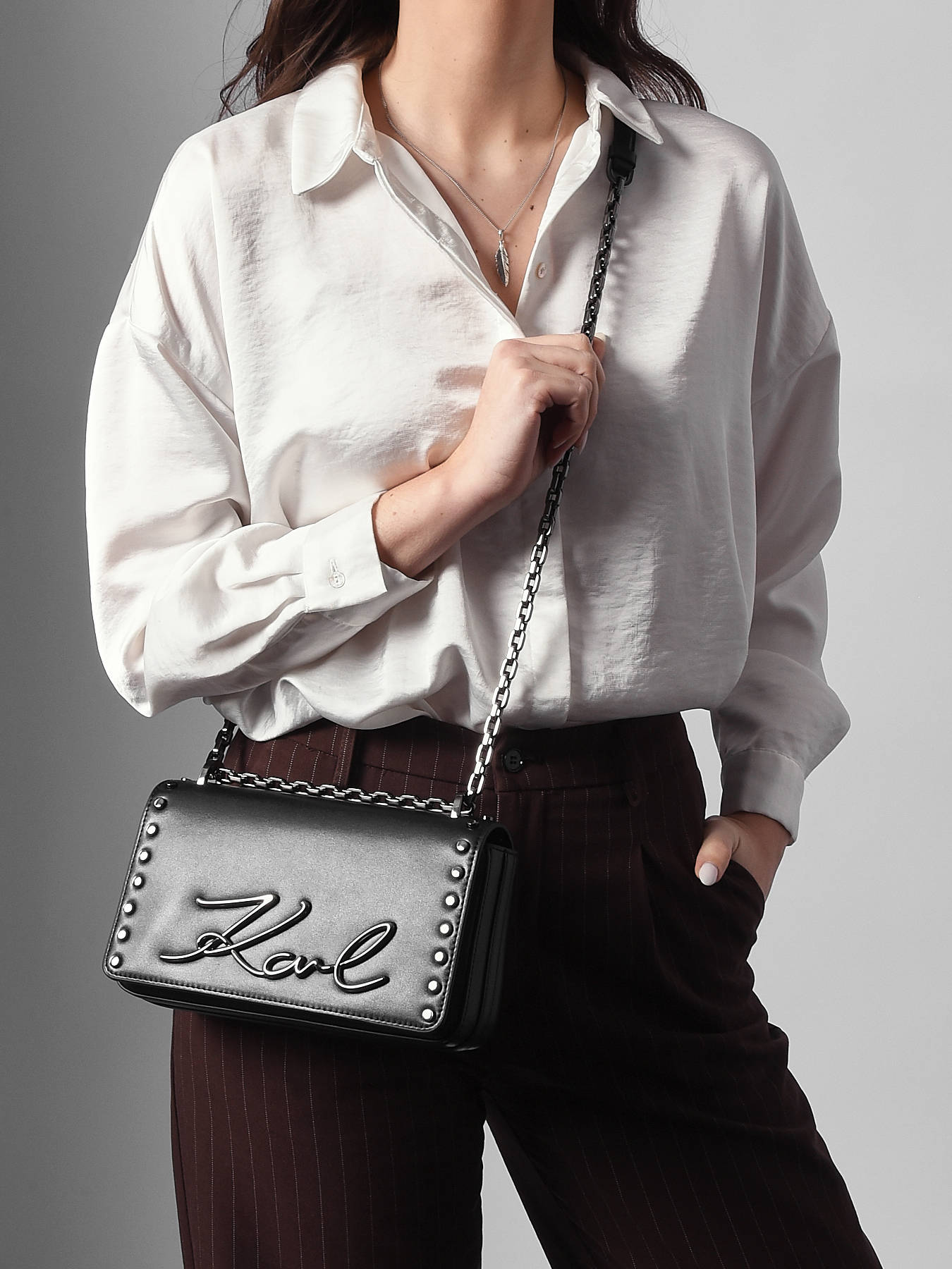 Een stijlvolle Cross body tas k signature uit de K signature collectie van het merk Karl lagerfeld, die u gekruist kunt dragen. Keuze bij de vleet!
