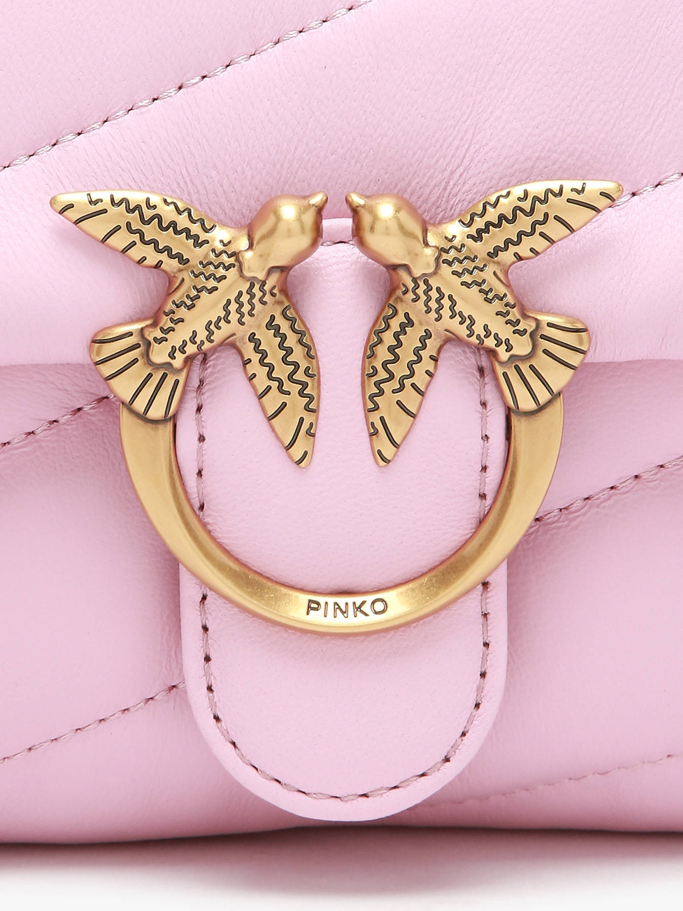 Is deze Love Baby Puff cross body tas van het Italiaanse merk Pinko niet onweerstaanbaar? Dankzij z'n compacte formaat, mooie lederkwaliteit en charmante details bezorgt dit accessoire eender welke outfit een glamoureuze touch. De iconische ""Love Birds"" (of tortelduifjes) vormen de iconische sluiting van deze tas. Binnenin is een compact interieur met een handig rits- en steekvakje voorzien, waar je jouw essentials makkelijk in kan opbergen. De chain schouderriem is verstelbaar, en kan gekruist of lang over de schouder gedragen worden.