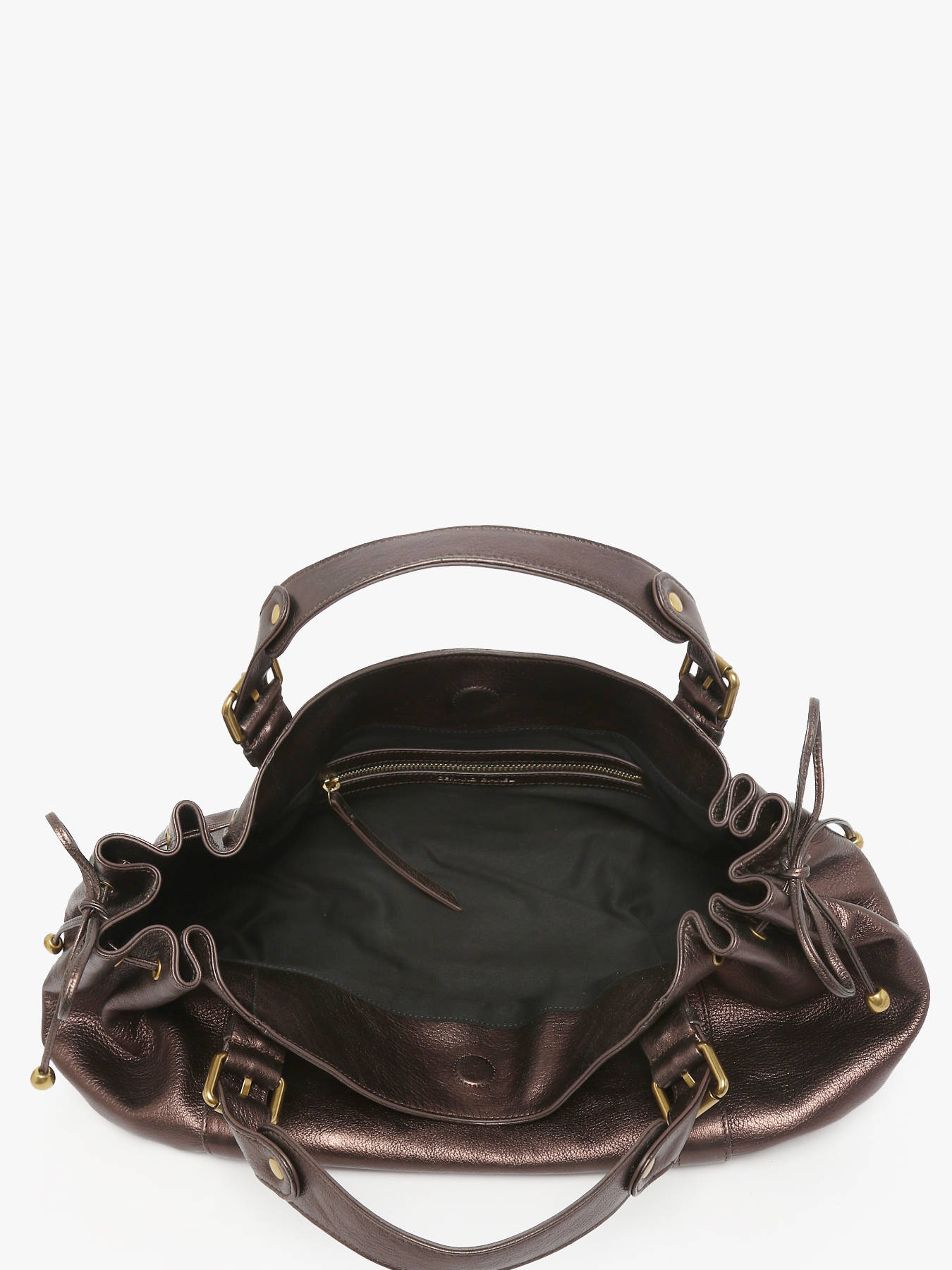 De GUN METAL-schoudertas van GERARD DAREL valt op door zijn moderne uitstraling en subtiele glans. Gemaakt van metallic geitenleer, combineert hij soepelheid, lichtheid en verfijning, en weerspiegelt daarmee het vakmanschap van het merk. De glanzende afwerking geeft een eigentijdse en elegante touch, perfect om zowel een dag- als avondoutfit op te fleuren. De magnetische sluiting zorgt voor een praktische en veilige bediening, terwijl het 16 cm hengsel een comfortabel en natuurlijk schouderhengsel biedt. Het ruime en doordachte interieur bestaat uit een hoofdvak en een ritssluiting om je persoonlijke spullen discreet op te bergen. De GUN METAL-tas van GERARD DAREL is het perfecte accessoire voor wie een verfijnde, chique en tijdloze stijl met een vleugje glans zoekt.