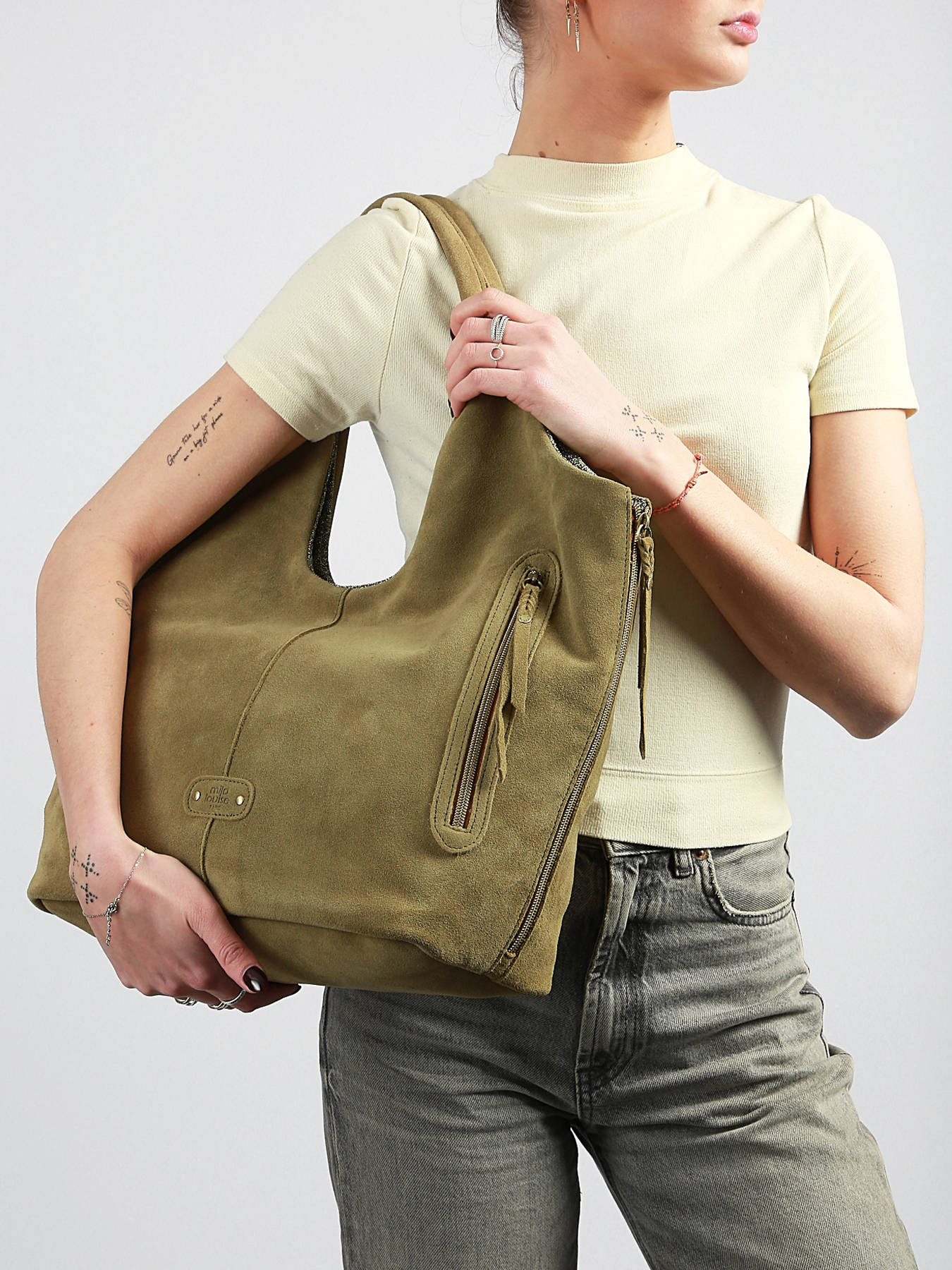 Schoudertas embossed emblem suède